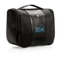1680D Polyester Kulturbeutel mit einem Hauptfach mit 4 Fächern, 2 offenen Netztaschen und einer Netztasche mit Reißverschluss im Inneren. Inkl. Haken zum einfachen Aufhängen.